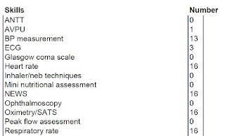 It can also open up the space for learner conversation. Recently, I've been experimenting with analytical reports with students in Liverpool. They are on work placement in medical institutions at the moment, equipped with an iPad e-portfolio system. The e-portfolio system was lacking a reporting engine, so there was an opportunity to do something different. Every Friday, the learners are sent by email a PDF summary of their activity. They all receive this at the same time, and consequently, they all talk to each other about what it contains. In the early weeks, it simply kept a count of the skills practiced which were identified in their portfolio submissions: